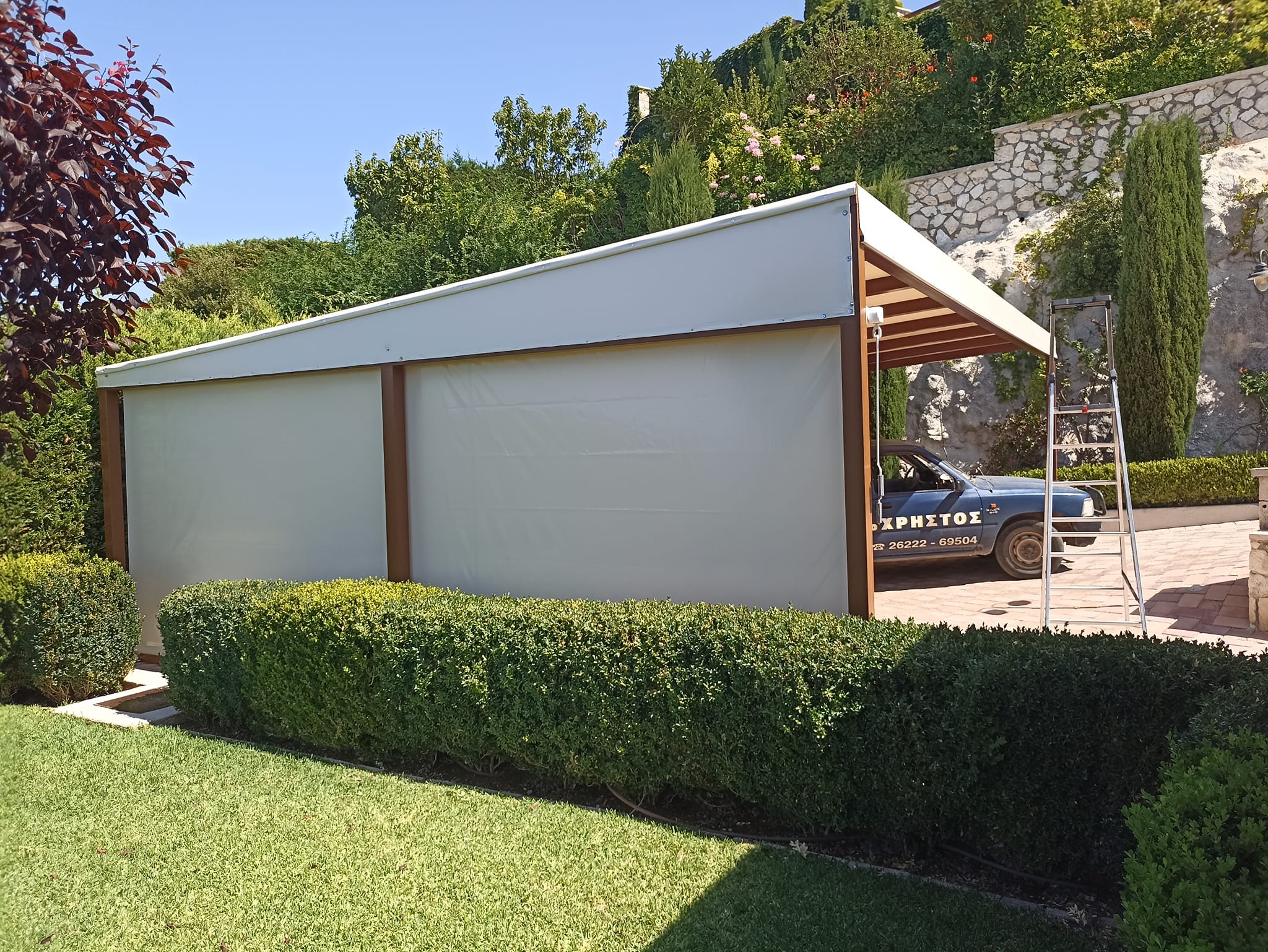 Ανθεκτικά και λειτουργικά στέγαστρα και σκέπαστρα, για προστασία οχημάτων από ήλιο και βροχή.